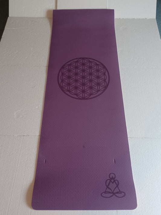 Yogamatte TPE-ecofriendly dunkellila/zartlila zweischichtig Blume des Lebens