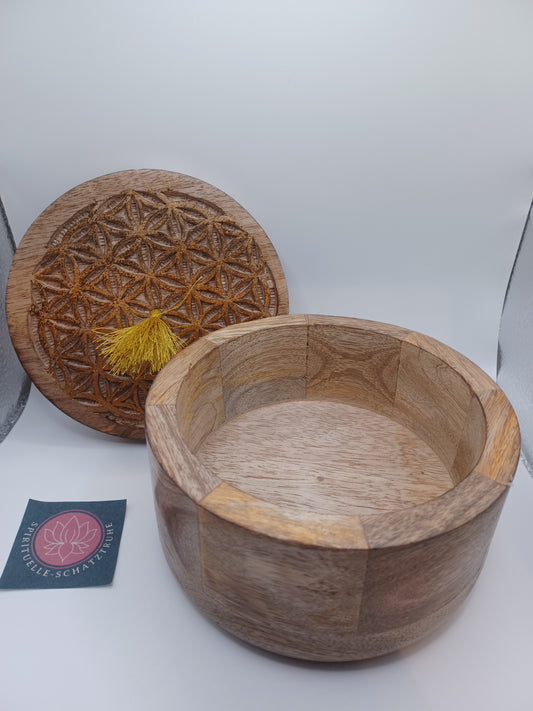 Wunderschöne große Schatulle Lebensblume aus Mangoholz 15 cm Durchmesser aus Mangoholz