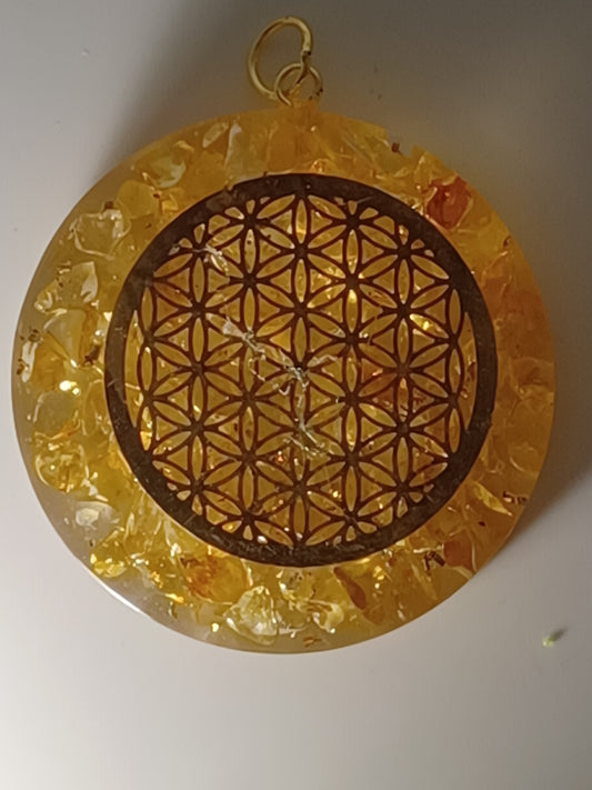 Orgonit Anhänger Blume des Lebens Citrin 4 cm