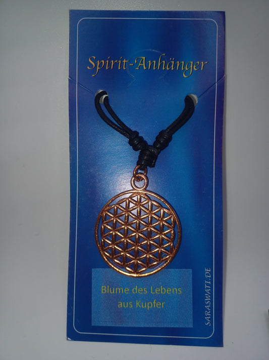 Anhänger Blume des Lebens Kupfer 3, 3 cm mit Baumwollband Spirit Anhänger