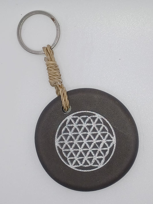 Schlüsselanhänger Blume des Lebens Stein schwarz silber 9 cm Anhänger