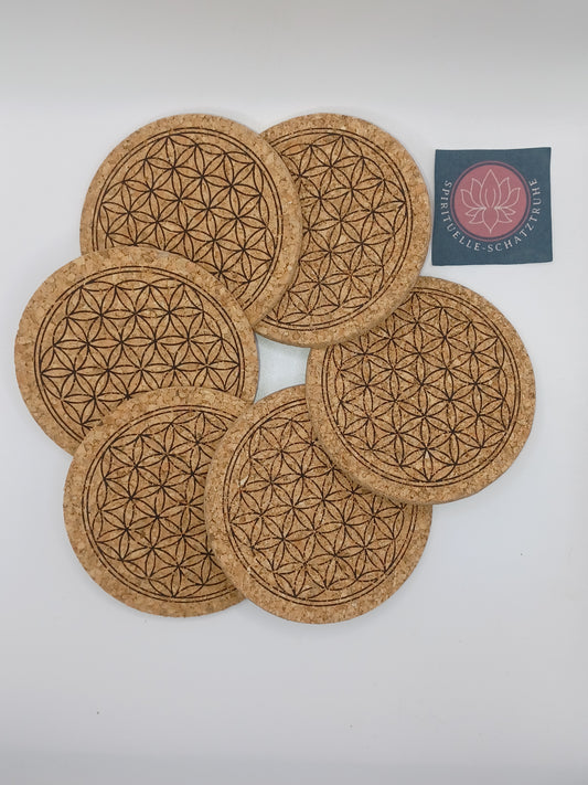6 Stück Set Korkuntersetzer Blume des Lebens Durchmesser: 9 cm