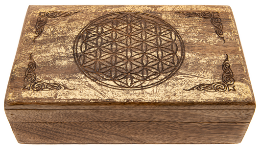 Blume des Lebens Holzbox Goldverzierung H:7cm L:20,5 cm Holzkästchen