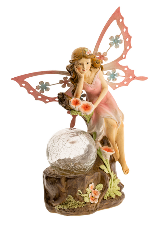 Blumenelfe mit Solarlicht H:25 cm Kunstharz mit Solarlicht Elfe
