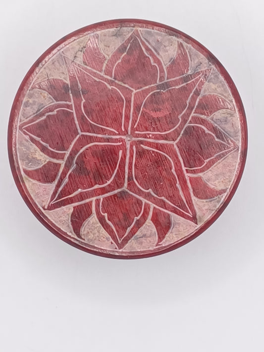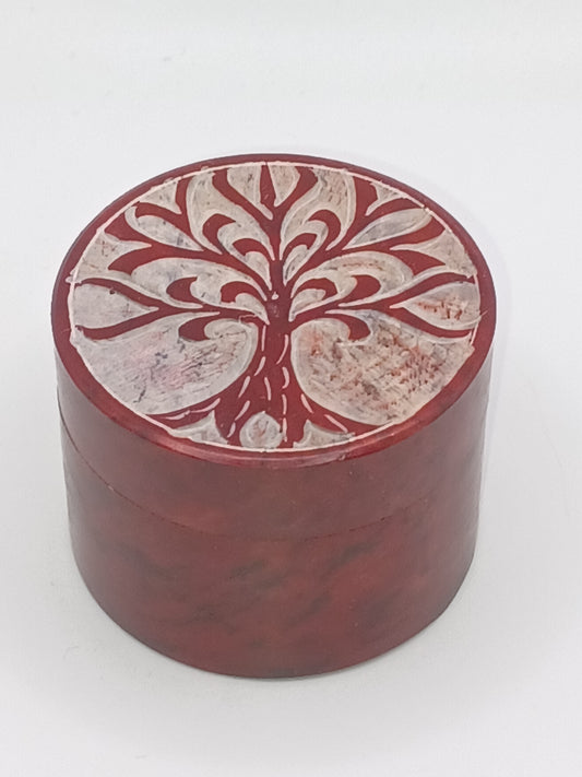 Box Baum des Lebens Speckstein rot rund 5 cm Steindöschen Schatzkästchen