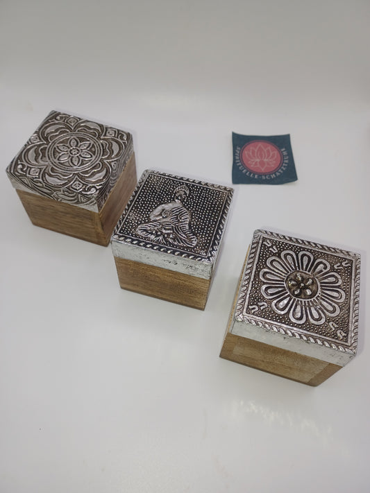 3er Set Holzboxen silber aus Mangoholz H:5 cm L: 5 cm B:5 cm