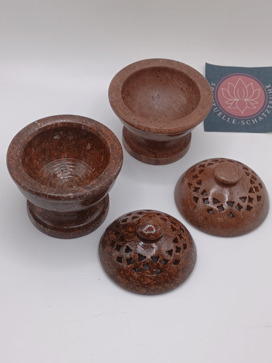 2 Steindöschen mit durchbrochenen Deckel Durchmesser 5 cm Höhe ca. 6 cm