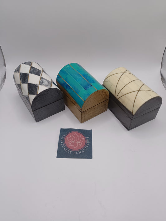 3er Set Holzboxen mit Kunstharzdekor H:5,5 cm L:7,5cm, B:5cm Holzdöschen