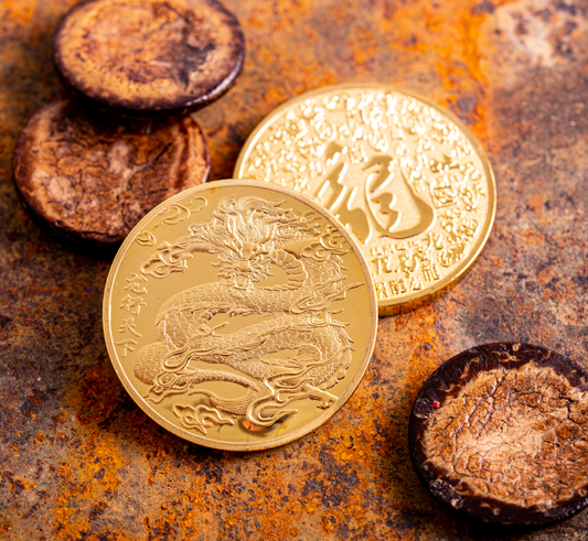 Glücksmünze Drache 40mm 24 K Vergoldet ø 40 mm Glück Wohlstand