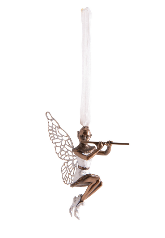 Elfe Ava mit silbernen Band für Garten geeignet H: 12 cm Kunstharz