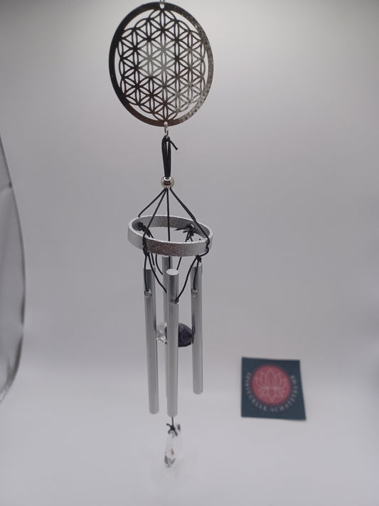Klangspiel Blume des Lebens Länge 25 cm mit Aufhängung Oktagon Kristall