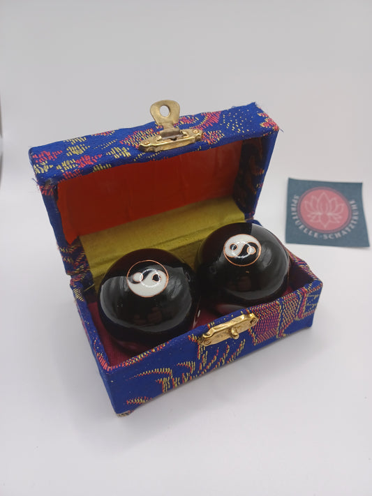 Qi Gong Kugeln Yin Yang schwarz 40 mm Klangkugeln im Brokatkästchen Massage