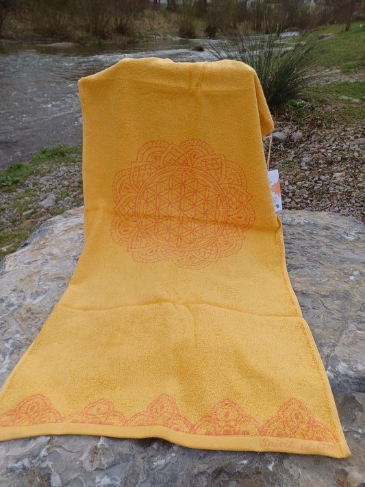 Handtuch Biobaumwolle Sonnengruß koralle mit Edelsteinen 48 x 109cm gelb