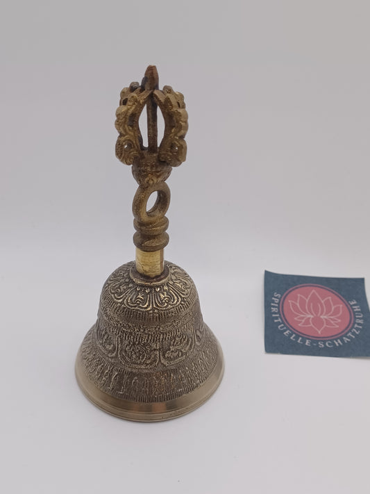 Glocke 11 cm Durchmesser 5,5 cm mit Dorje Griff Kupfer Zink Zinn Legierung