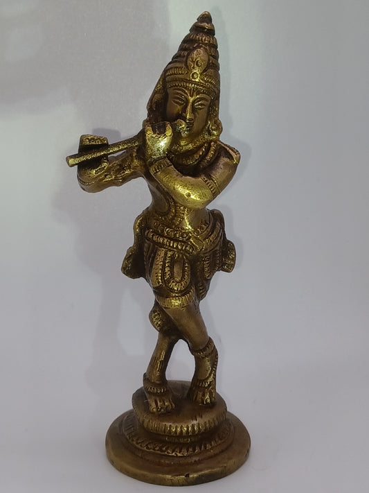 Krishna Messing ca. 12 cm mit Flöte Gottheit Feng Shui Figur, Skulptur, Statue