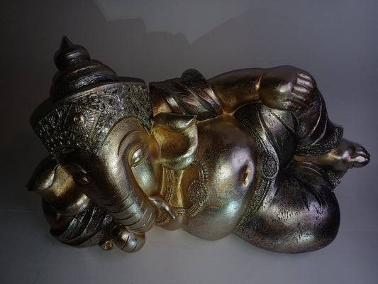 Ganesha liegend aus Poly champagner 33 x 16 x 16 cm Figur Skulptur Statue
