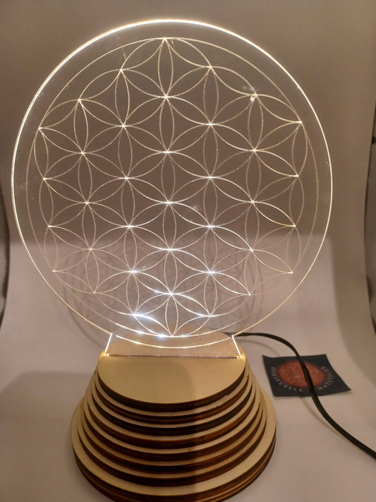 Ambientelicht Blume des Lebens mit LED Adapter inklusive 20 cm mit Holzsockel