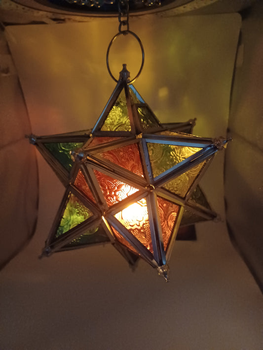 Orientalisches Licht Glücksstern mit Kette Stern mit vielen Glasfarben