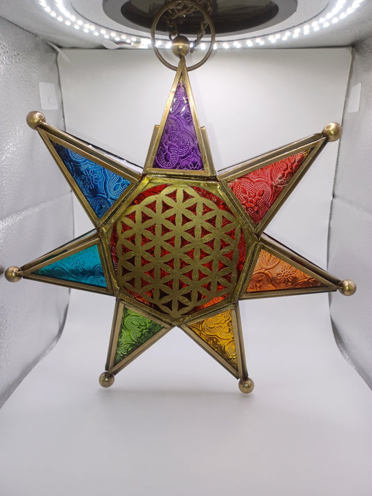 Orientalisches Licht Chakra Stern mit Kette Teelichthalter Echtglas