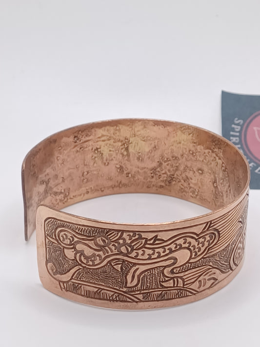 Armreif mit Drachenmuster Kupfer Breite 2,5 cm