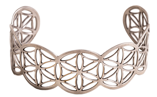 Blume des Lebens Armreif klein Messing versilbert B:2,5 cm offen