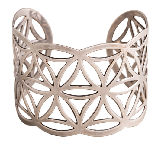 Blume des Lebens Armreif groß Messing versilbert B: 4,5 cm offen