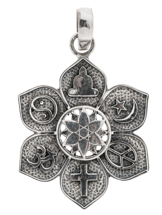Chakra Mandala Anhänger Messing rhodiniert Durchm: 27 mm