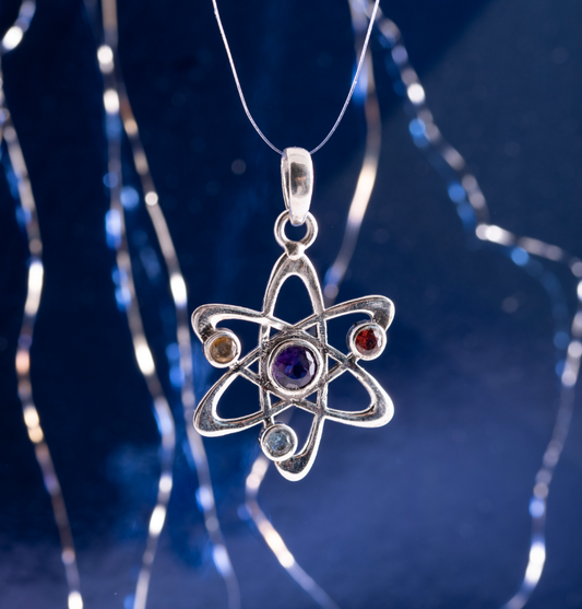 Atom Anhänger mit Edelsteinen 925 Sterling Silber mit Amethyst, Cirtrin...