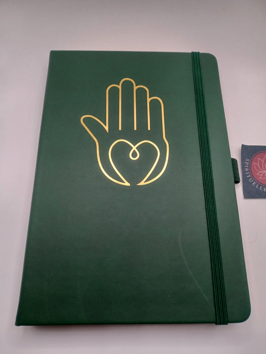 Yoga Schreibbuch grün Hand A5 in Kunstleder gebunden Notizbuch Loveria