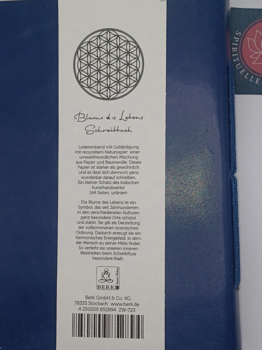 Schreibbuch Lebensblume blau gold 144 Seiten Lederienband Notizbuch