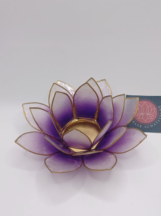 Lotus Teelichthalter violett Capiz Muscheln 13,5 cm