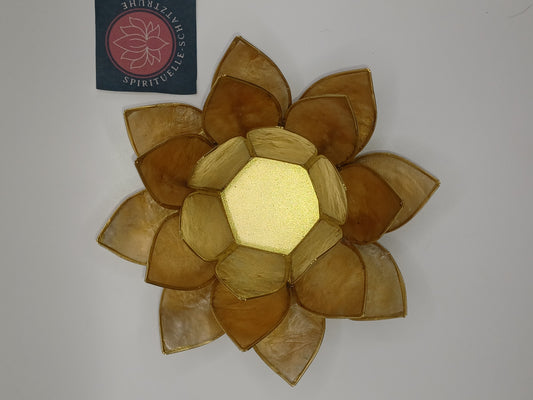 Lotus Teelichthalter beige goldfarbig 13, 5 cm aus Capiz Muscheln