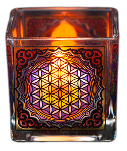 1 Teelichtglas Blume des Lebens in Geschenkbox L: 6 cm Teelichthalter