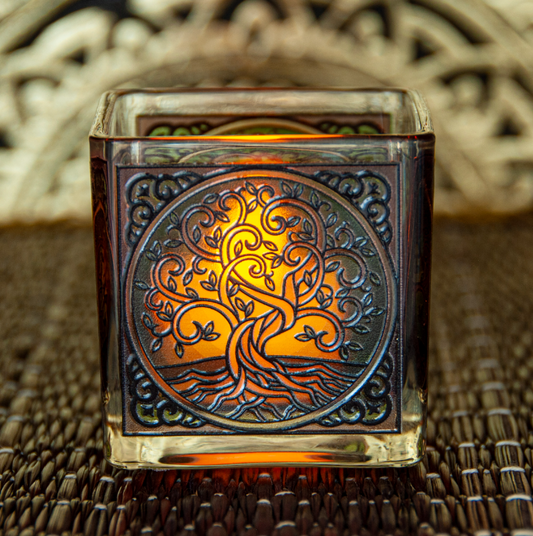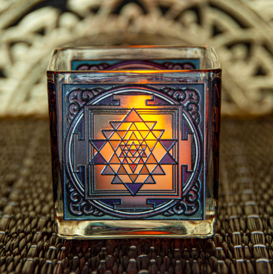 1 Teelichtglas Shri Yantra Schutzsymbol L:6 cm Teelichthalter