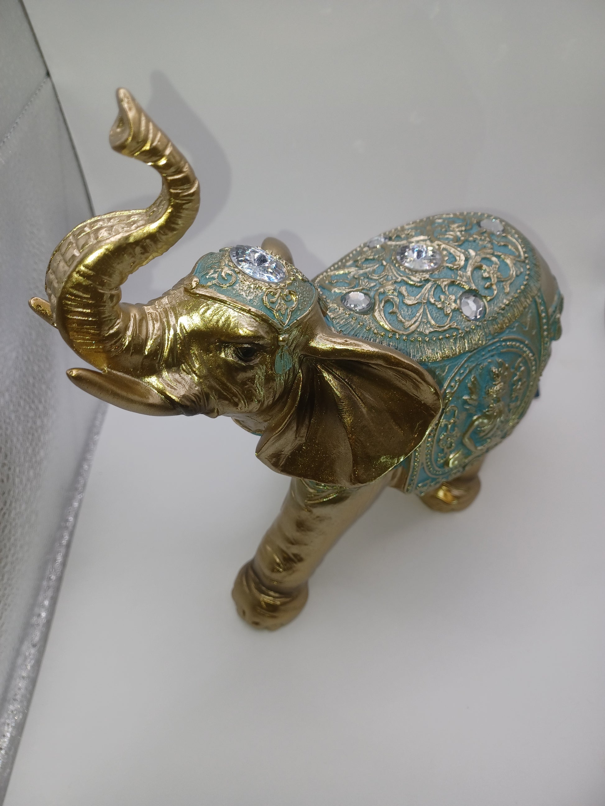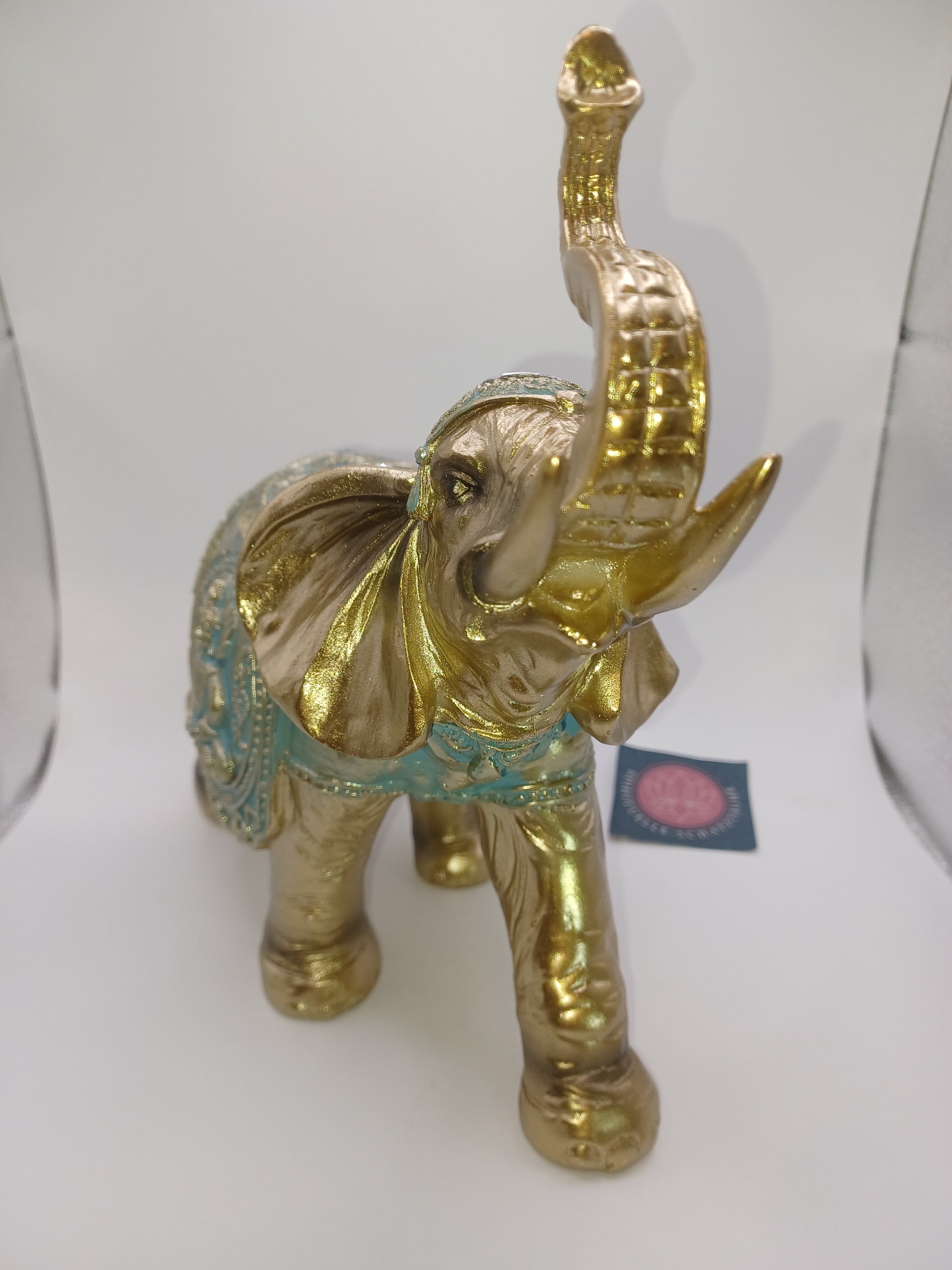 Elefant aus Poly Gold 21 x 20 x 10 cm Figur Skulptur Statue indisch Buddha